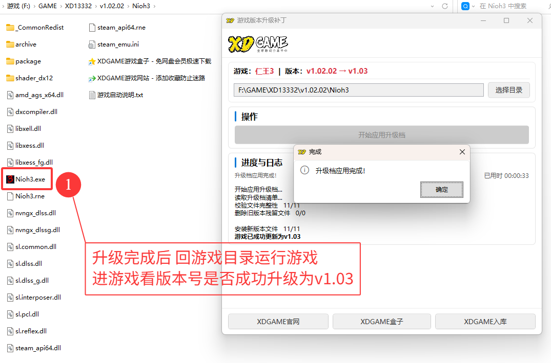 ④进入游戏版本号成功升级为了v1.03了,就代表成功了。